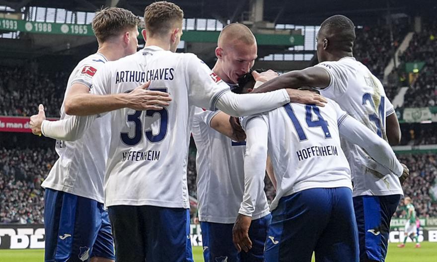 Την πρώτη της νίκη μετά από τρεις αγωνιστικές και δεύτερη στη σεζόν μακριά από την έδρα της πανηγύρισε η Χόφενχαϊμ, η οποία και έφυγε νικηφόρα από την έδρα της Βέρντερ Βρέμης με σκορ 3-1 για την 22η αγωνιστική της Bundesliga.