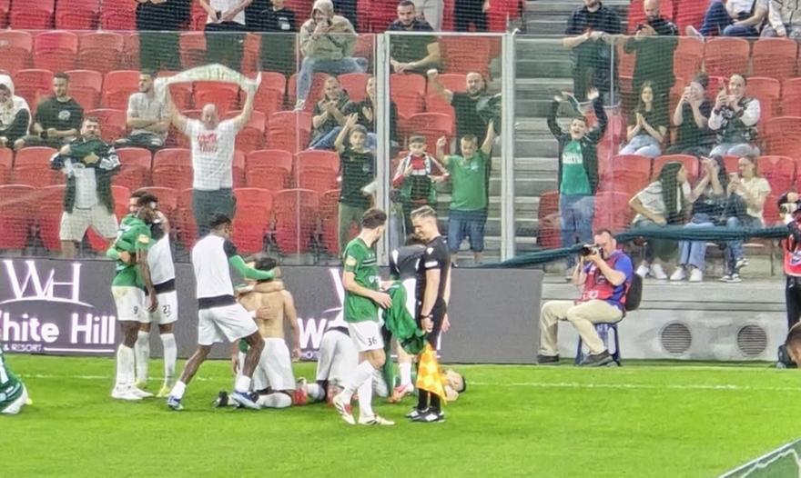 Το τελευταίο σφύριγμα βρήκε παίκτες, τεχνικό επιτελείο και διοίκηση να πανηγυρίζουν παρέα με τους οπαδούς την κατάκτηση του δεύτερου συνεχόμενου πρωταθλήματος.