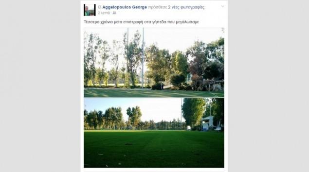 Μάλιστα, ο νεαρός Γιώργος Αγγελόπουλος ανέβασε στον προσωπικό του λογαριασμό μια φωτογραφία, γράφοντας: «τέσσερα χρόνια μετά επιστροφή στα γήπεδα που μεγαλώσαμε».