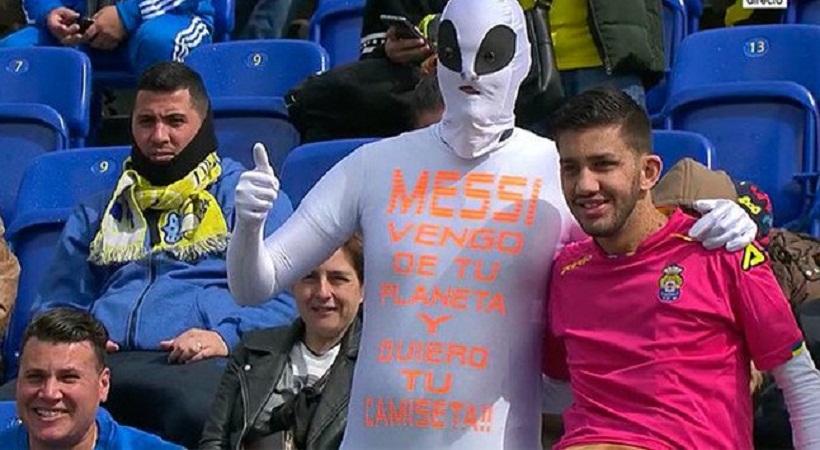 Έτσι, ένας φίλος του Αργεντινού σταρ πήγε στο γήπεδο της Λας Πάλμας ντυμένος σαν εξωγήινος, ζητώντας τη φανέλα του.