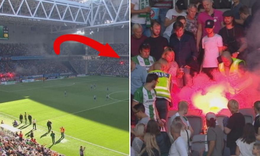 Η αναμέτρηση της Χάμαρμπι με την Τζουργκάρντεν λίγο έλειψε να τιναχτεί στον… αέρα, καθώς με το που έγινε η σέντρα οπαδοί των φιλοξενούμενων εκτόξευσαν μία φωτοβολίδα στην κερκίδα των γηπεδούχων.