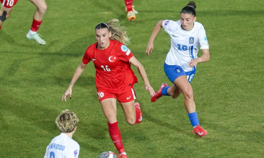 Στο 15', η Τουρκία κέρδισε πέναλτι, το οποίο εκτέλεσε η Τοπτσού, αλλά η Πεταλωτή έπεσε στη σωστή πλευρά κι απέκρουσε. Στο 37’, μετά από απόκρουση της Πεταλωτή σε σέντρα-σουτ της Πεκέλ, η Χάντσαρ πήρε το ριμπάουντ και πλάσαρε από κοντά για το 1-0.