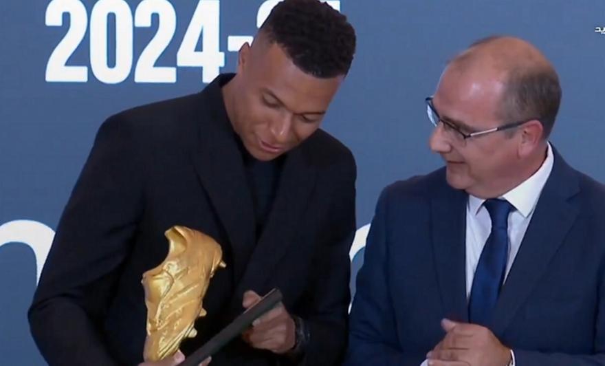 Παρουσία όλων των συμπαικτών του, του προέδρου, Φλορεντίνο Πέρεθ, αλλά και της οικογένειάς του, ο Κιλιάν Εμπαπέ πήρε το Χρυσό Παπούτσι με το οποίο διακρίθηκε για το γεγονός πως σκόραρε περισσότερο απ’ όλους την περασμένη αγωνιστική περίοδο.