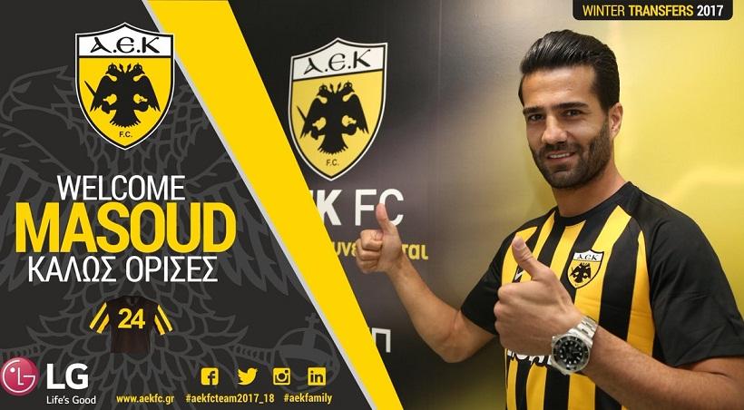 Σε λίγο η επίσημη ανακοίνωση και οι πρώτες του δηλώσεις!#aekfcteam2017_18 #wintertransfers2018 #aekfamily #welcomemasoud pic.twitter.com/pvv105sZFm