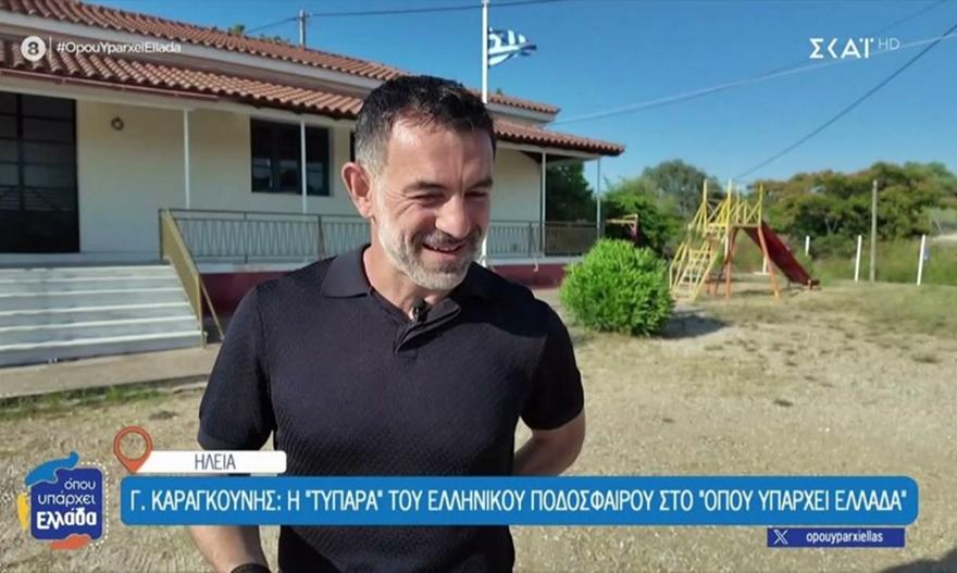 Τον τόπο όπου μεγάλωσε και έκανε παράλληλα τα πρώτα του ποδοσφαιρικά βήματα –σε ερασιτεχνικό επίπεδο- παρουσίασε ο Γιώργος Καραγκούνης μέσω της εκπομπής «Όπου Υπάρχει Ελλάδα» του ΣΚΑΪ.