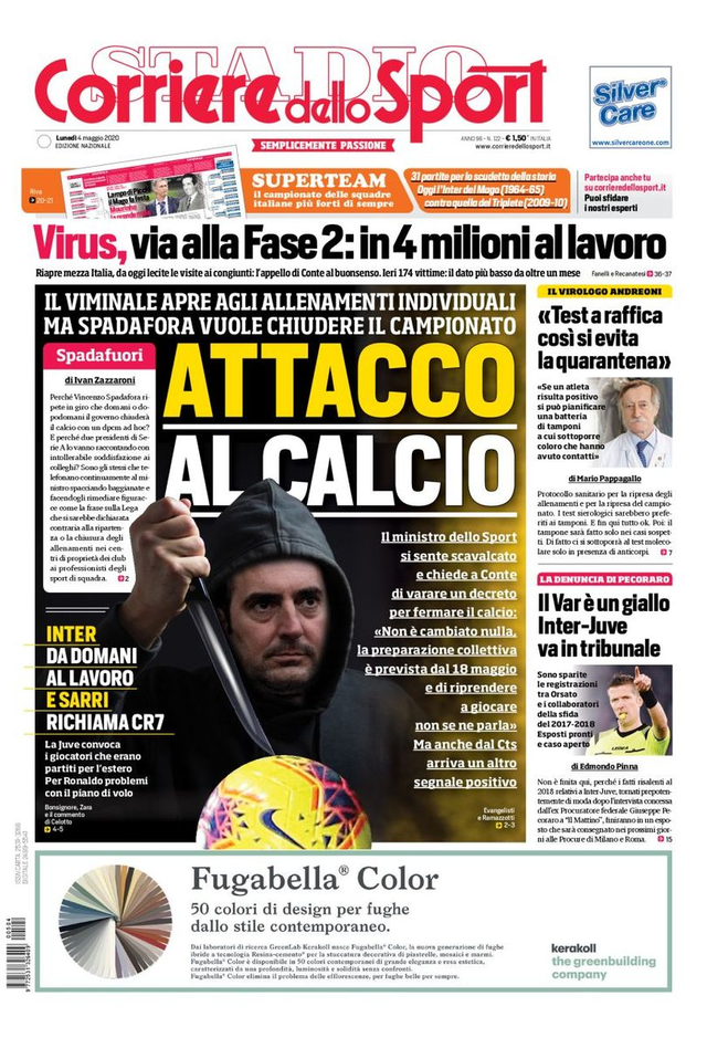 Οι ομάδες της Serie A επιθυμούν, τουλάχιστον στην συντριπτική τους πλειονότητα, την επιστροφή στην δράση. Για την ώρα, ωστόσο, ο υφυπουργός Αθλητισμού, Βιντσέντζο Σπανταφόρα, παρουσιάζεται επιφυλακτικός και υψώνει εμπόδια.