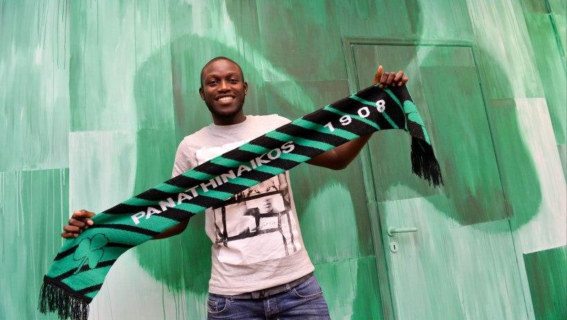 Πανηγυρίζει ο Ουσμάν Κουλιμπαλί του Παναθηναϊκού για την πρόκριση της χώρας του στο Κύπελλο Εθνών Αφρικής.