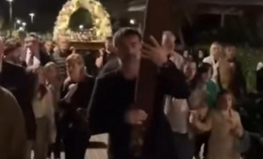 Μάλιστα, όπως διακρίνεται στο βίντεο του Npress, ο παλαίμαχος ποδοσφαιριστής κράτησε και τον σταυρό, ανάμεσα σε δεκάδες πιστούς.