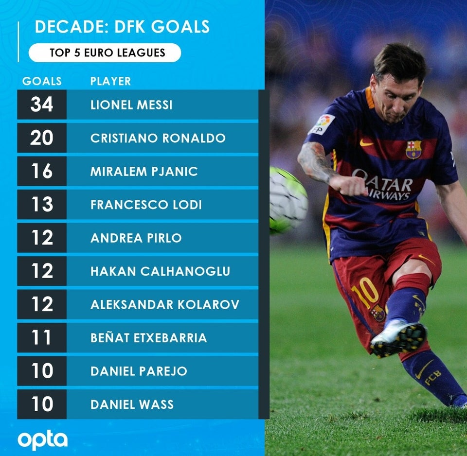 Ο Λιονέλ Μέσι έκλεισε την δεκαετία στην πρώτη θέση με τα περισσότερα γκολ από εκτελέσεις φάουλ.