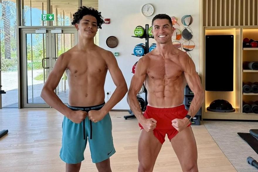 Ο πρωτότοκος γιος του Κριστιάνο Ρονάλντο, που πρόσφατα πραγματοποίησε την πρώτη του εμφάνιση με την Εθνική Πορτογαλίας Κ15, φωτογραφήθηκε μαζί με τον 40χρονο σούπερ σταρ φλεξάροντας αμφότεροι το γυμνασμένο σώμα και τους κοιλιακούς τους στον κόσμο του Instagram.