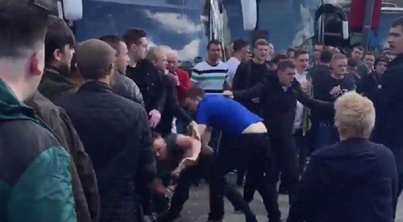 Οπαδοί των δύο ομάδων αντάλλαξαν γροθιές σε σημείο στάθμευσης των πούλμαν που τους μετέφεραν. Το επεισόδιο σταμάτησε με την άφιξη αστυνομικών δυνάμεων στο χώρο, αν και δεν έγινε καμία σύλληψη.