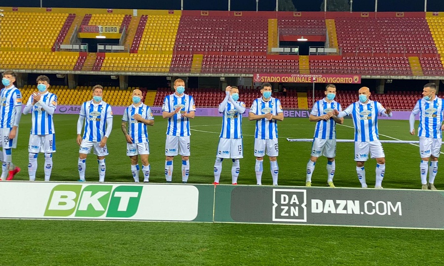 Με μάσκες -έστω και για λίγο- οι ποδοσφαιριστές της Πεσκάρα.