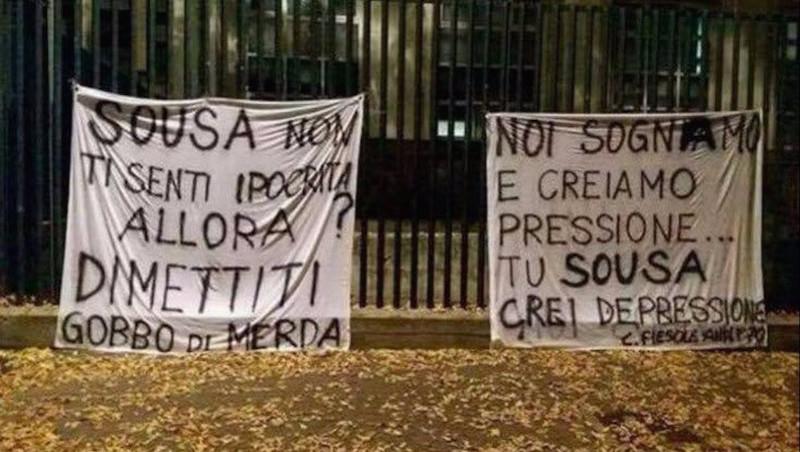 Πριν από το σημαντικό παιχνίδι με την Ίντερ στο Μιλάνο, οι οπαδοί των «βιόλα» έστειλαν το μήνυμα προς τον Σόουζα, ζητώντας του την άμεση παραίτηση του από το τιμόνι της ομάδας.