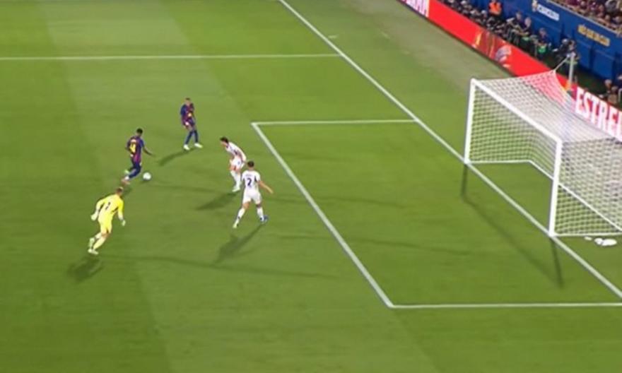Αφού τον απέφυγε με ωραία ντρίπλα, στη συνέχεια «άδειασε» και έναν αμυντικό έχοντας φάτσα φόρα το τέρμα. Όμως το πλασέ του από το σημείο του πέναλτι κατέληξε άουτ με τον ίδιο να μην μπορεί να πιστέψει την ευκαιρία που έχασε!