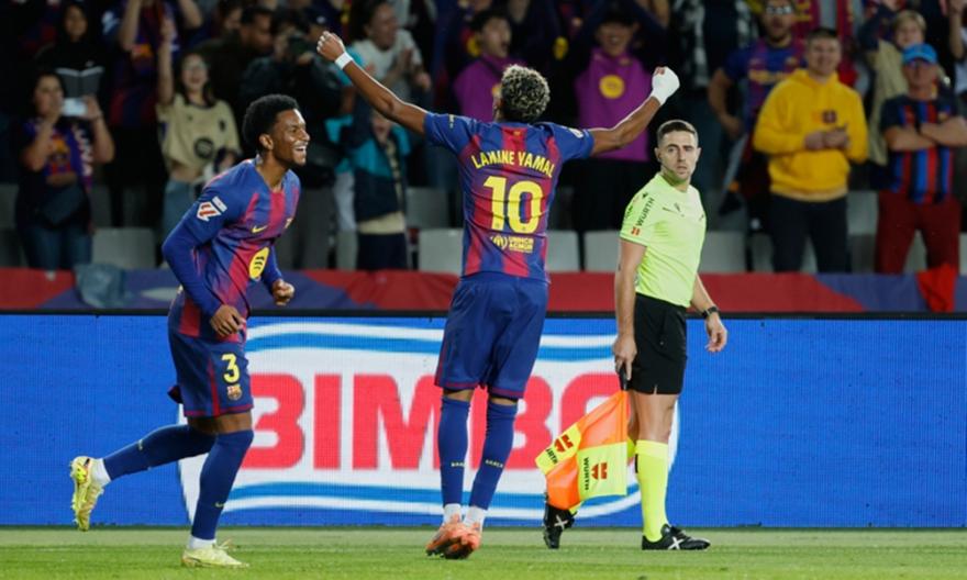 Η ομάδα του Χάνσι Φλικ μπήκε πολύ δυναμικά στο παιχνίδι με στόχο να το «καθαρίσει» από νωρίς. Μόλις στο 9ο λεπτό, ο Γιαμάλ άνοιξε το σκορ με υπέροχο τελείωμα από τα δεξιά της περιοχής, έπειτα από μπαλιά «ξυράφι» του Μπαλντέ, για να ακολουθήσει μια απίστευτα γρήγορη αντεπίθεση λίγα δευτερόλεπτα αργότερα για το 2-0 του Φεράν Τόρες από ασίστ του Λόπεθ!