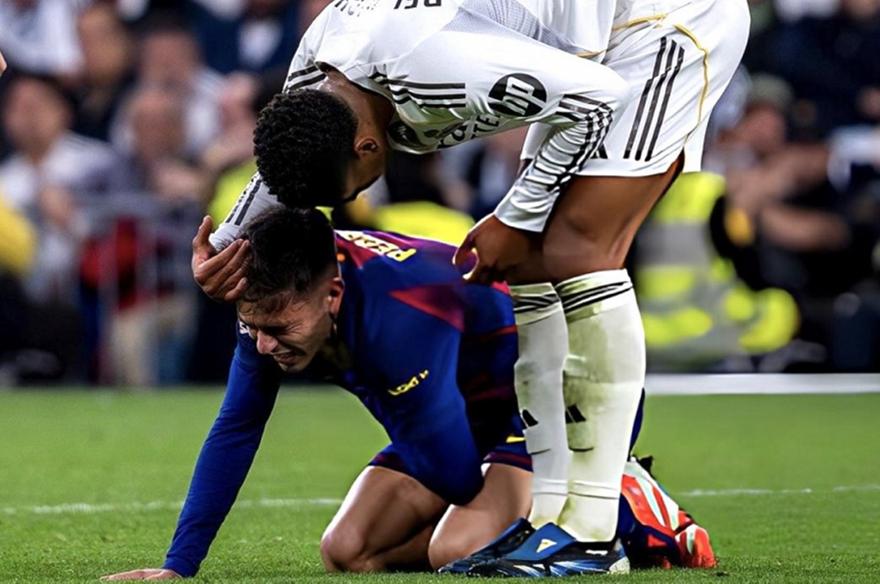 Ο Πέδρι σε μια διεκδίκηση της μπάλας έπεσε κάτω από χτύπημα του Τζουντ Μπέλιγχαμ και ο Ισπανός διεθνής μέσος ζήτησε την τιμωρία του αντιπάλου του. Ο Άγγλος μέσος πήγε και με όχι φιλική διάθεση τον έπιασε από το λαιμό, ενώ στη συνέχεια φάνηκε να του λέει ξεκάθαρα «Κόκκινη κάρτα; Ούτε με τον Νεγκρέιρα!».