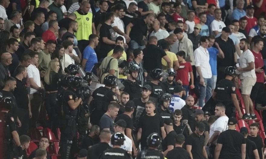 «Εμφύλιος» μεταξύ Σέρβων φιλάθλων στο ματς κόντρα στην Αγγλία στο Βελιγράδι για τα προκριματικά του Παγκοσμίου Κυπέλλου του 2026. Παρευρισκόμενοι οπαδοί στο «Ράικο Μίτιτς», μισοί πολέμιοι και μισοί υποστηρικτές του προέδρου της πρώην γιουγκοσλαβικής χώρας, Αλεξάνταρ Βούτσιτς, πιάστηκαν στα χέρια στη διάρκεια της αναμέτρησης.