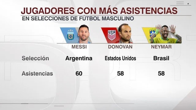 Με τις δύο ασίστ που μοίρασε στη φιλική νίκη της Αργεντινής επί του Πουέρτο Ρίκο (2-0), ο αρχηγός της «Αλμπισελέστε» έφτασε τις 60 ασίστ, ξεπερνώντας τους Λάντον Ντόνοβαν (ΗΠΑ) και Νεϊμάρ (Βραζιλία), που έχουν από 58.
