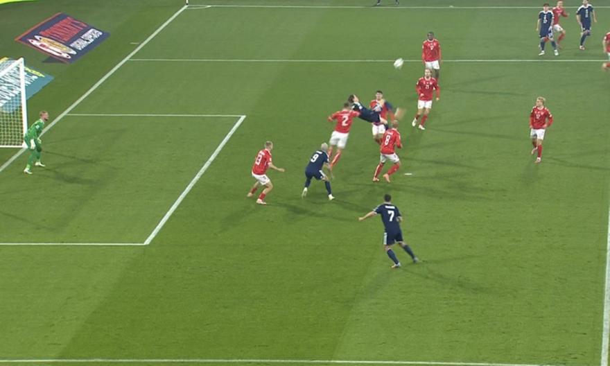 Μόλις στο 3ο λεπτό της αναμέτρησης, η Σκωτία πήρε κεφάλι στο σκορ απέναντι στη Δανία και έβαλε από νωρίς τις βάσεις για μια μεγάλη βραδιά. Ένα γέμισμα στην περιοχή από τον Ντόουκ βρήκε τον Σκοτ ΜακΤόμινεϊ, ο οποίος με εκπληκτική κίνηση στον αέρα εκτέλεσε ανάποδο ψαλίδι. Η μπάλα κατευθύνθηκε με δύναμη στη γωνία της εστίας, αφήνοντας τον τερματοφύλακα άναυδο και το κοινό σε παραλήρημα.