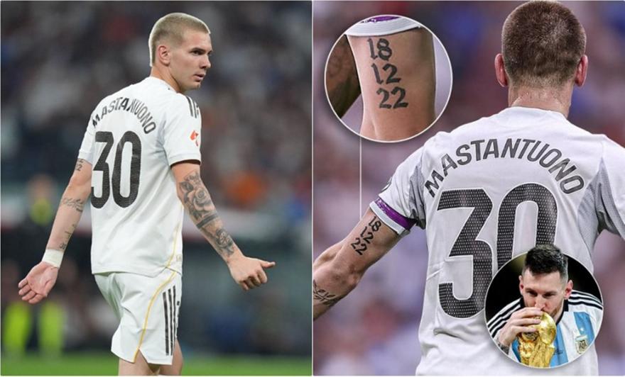 Ο 18χρονος έχει κάνει τατουάζ στο αριστερό του χέρι μια ημερομηνία που είναι σημαδιακή για την πατρίδα του. Το «18-12-2022» αναφέρεται στην ημερομηνία που η Αργεντινή κατέκτησε το Παγκόσμιο Κύπελλο του Κατάρ νικώντας στα πέναλτι τη Γαλλία.