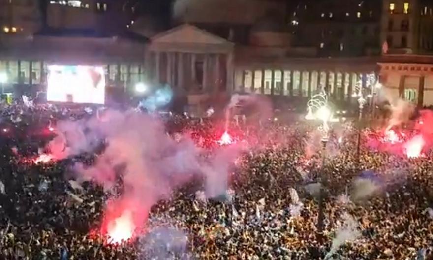 Το 2-0 στο «Ντιέγκο Αρμάντο Μαραντόνα» έβαλε... φωτιά στην πόλη των Πρωταθλητών, με τις σκηνές στην πλατεία Πλεμπισίτο να είναι εντυπωσιακές.