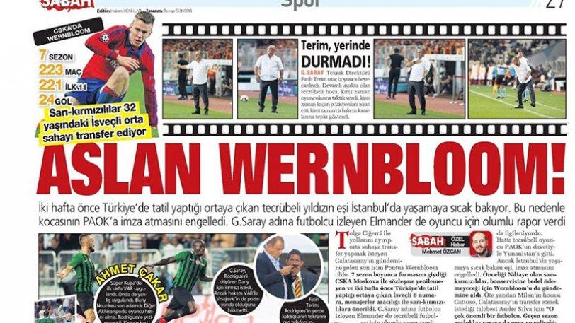 «Λιοντάρι ο Βέρνμπλουμ»! Αυτός είναι ο τίτλος με τον οποίο συνοδεύει το σχετικό ρεπορτάζ η εφημερίδα «Sabah» το ενδιαφέρον της Γαλατάσαραϊ για τον Πόντους Βέρνμπλουμ.