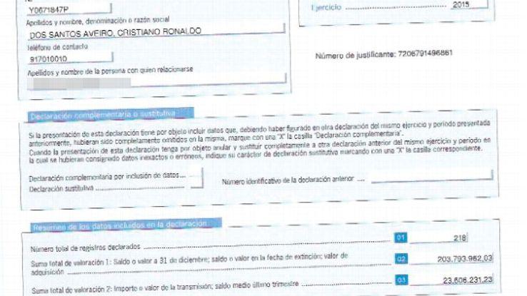 Το ντοκουμέντο αναφέρει πως ο άσος της Ρεάλ δήλωσε εισοδήματα 23,5 εκατ. ευρω εντός Ισπανίας και άλλα 203,7 εκατ. ευρώ, που τα κέρδισε από δραστηριότητες (προφανώς εξωαγωνιστικές) εκτός Ισπανίας.