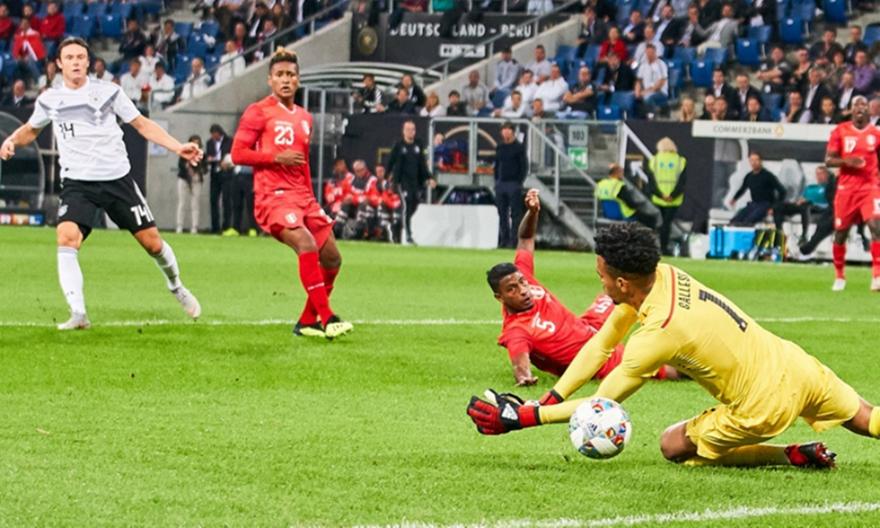 Η ομάδα του Γιόαχιμ Λεβ παρατάχθηκε με πέντε αλλαγές σε σχέση με το παιχνίδι της απέναντι στη Γαλλία, στην πρεμιέρα του Nations League, ενώ έδειξε καλά σημάδια στο επιθετικό κομμάτι στο πρώτο ημίχρονο. Παρόλα αυτά βρέθηκε πίσω στο σκορ, από το γκολ του Λουίς Αντβίνκουλα στο 22’, ενώ κατάφερε να σκοράρει σε μια μόνο από τις ευκαιρίες που «έφτιαξε», με τον Γιούλιαν Μπραντ μετά από ασίστ του Τόνι Κρόος, τρία λεπτά μετά το 0-1…