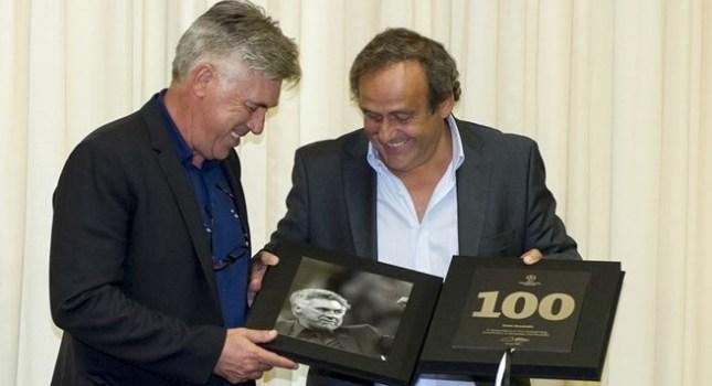 Ο Μισέλ Πλατινί παρέδωσε από μια κορνίζα με φωτογραφία στους τρεις προπονητές και μια πλακέτα που ανέγραφε το… χρυσό νούμερο των 100 παιχνιδιών.