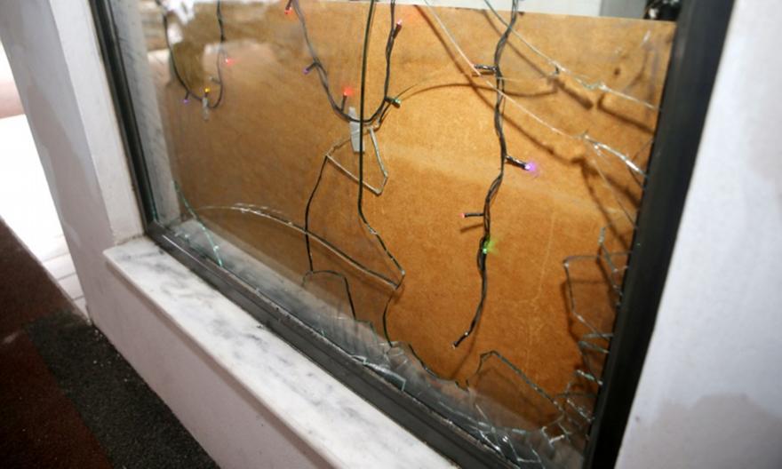 Απεικονίζεται λοιπόν το σπασμένο πλαϊνό τζάμι στην είσοδο, από το οποίο πέταξαν στο εσωτερικό την κροτίδα.