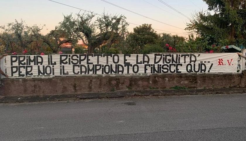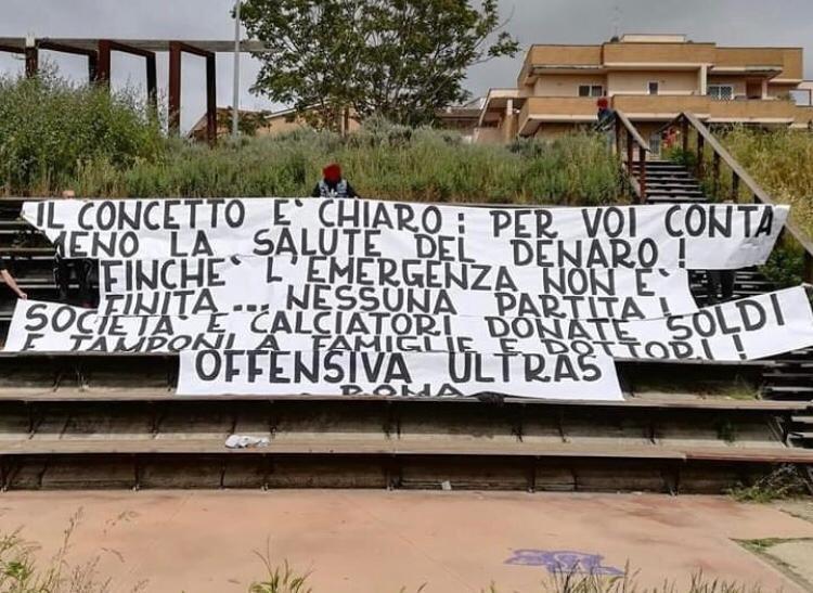 Συγκεκριμένα, οι οργανωμένοι οπαδοί των «τζιαλορόσι» υπογραμμίζουν πως μέχρι να εξαφανιστεί η πανδημία του κορωνοϊού δεν πρέπει να υπάρξει καμία αθλητική δραστηριότητα. Μάλιστα, την αντίδρασή τους αυτή την εκφράζουν αναρτώντας πανό σε διάφορα σημεία της Ρώμης.