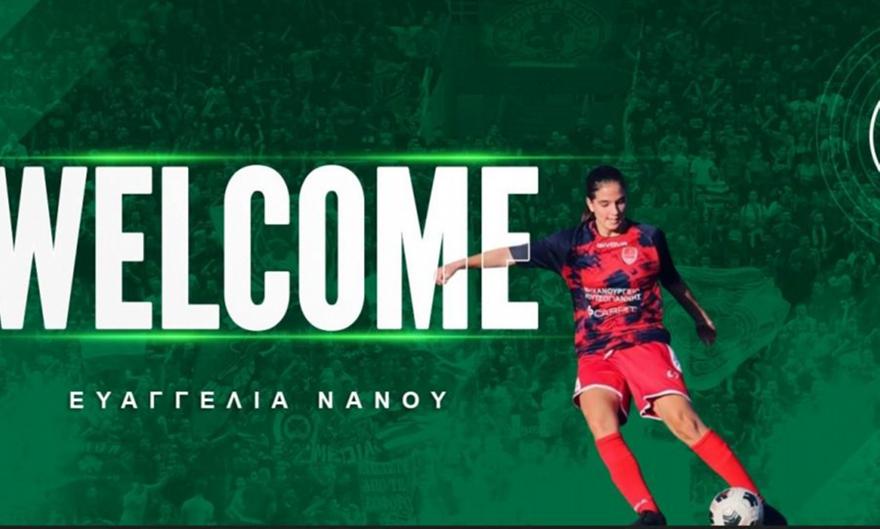 Σημαντική ενίσχυση για τη γυναικεία ομάδα ποδοσφαίρου του Παναθηναϊκού, καθώς απέκτησε την Ευαγγελία Νάνου και θα βοηθήσει την ομάδα τη νέα χρονιά. Η 18χρονη ποδοσφαιρίστρια, που είναι διεθνής με την Εθνική Νεανίδων και την Εθνική Κορασίδων, αποκτήθηκε από τον ΑΣ Βόλου 2004.