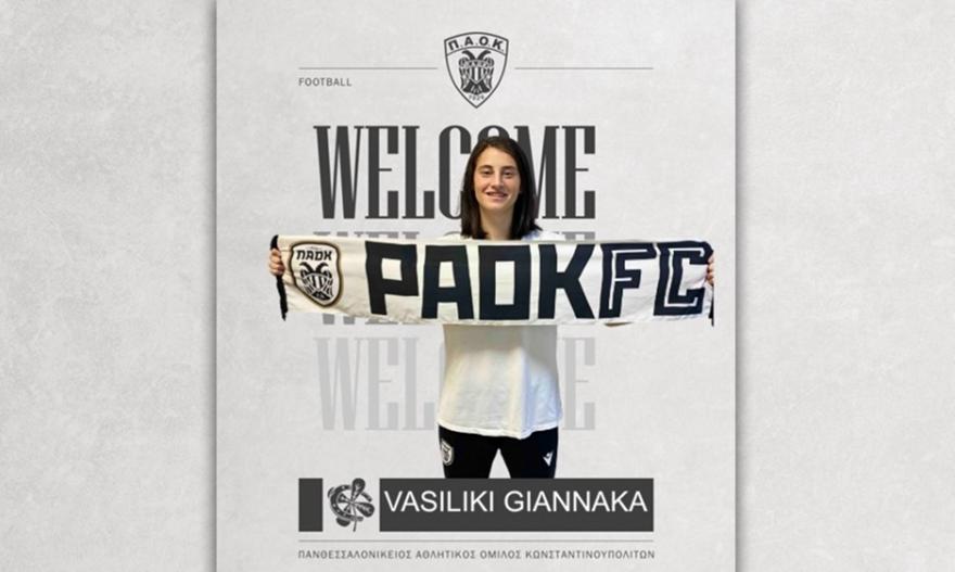Ποδοσφαιρίστρια του ΠΑΟΚ έγινε ξανά την Τρίτη η Βασιλική Γιαννακά. Ο Ερασιτέχνης «δικέφαλος» ανακοίνωσε την απόκτηση της 21χρονης δεξιάς φουλ μπακ-εξτρέμ για τα επόμενα τρία χρόνια, με την ίδια να επιστρέφει στις «ασπρόμαυρες» μετά από έναν χρόνο και την τριετή προηγούμενη θητεία της στις πάλαι ποτέ μόνιμες πρωταθλήτριες Ελλάδος.