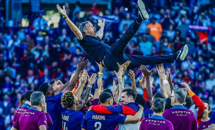 Μετά τη λήξη της αναμέτρησης, οι Παριζιάνοι πανηγύρισαν ένα ακόμη τρόπαιο, με τον Λουίς Ενρίκε να έχει την τιμητική του.