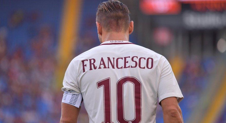 Όχι δεν άλλαξε ομάδα. Απλώς η φανέλα του αντί για Τότι στην πλάτη έγραφε το μικρό του όνομα Φραντσέσκο, ενώ το περιβραχιόνιό του έγραφε πάνω όλες τις σεζόν που έχει αγωνιστεί στη Ρόμα.