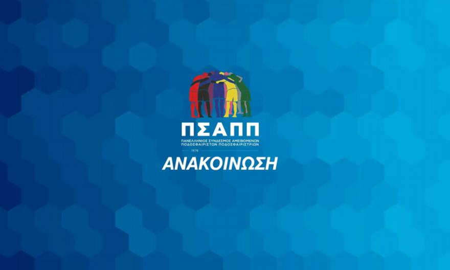 Ο Πανελλήνιος Σύνδεσμος Αμειβομένων Ποδοσφαιριστών και Ποδοσφαιριστριών (ΠΣΑΠΠ), με απόλυτο σεβασμό προς την αλήθεια, την αξιοπρέπεια των μελών του και τη θεσμική του ευθύνη απέναντι στον αθλητισμό, τοποθετείται δημόσια με αφορμή πρόσφατες ψευδείς και παραπλανητικές αναφορές που κυκλοφορούν στα Μέσα Κοινωνικής Δικτύωσης.