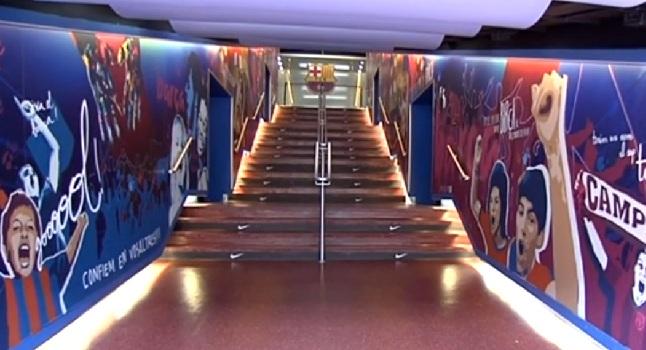 Οι τοίχοι στο διάδρομο που οδηγεί από τα αποδυτήρια μέχρι τον αγωνιστικό χώρο, μια έκταση περίπου 70 τετραγωνικών μέτρων, έχουν αποκτήσει ένα νέο λουκ, καθώς έχουν διακοσμηθεί με ζωγραφιές και φωτογραφίες, αλλά και συνθήματα του κόσμου της «Μπάρτσα».
