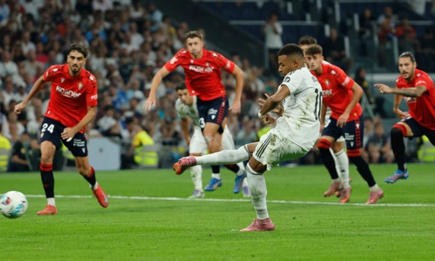Ζόρικη νίκη για τη Ρεάλ Μαδρίτης. Οι «μερένχες» νίκησαν στο «Σαντιάγκο Μπερναμπέου» 1-0 την Οσασούνα με εύστοχο πέναλτι του Κιλιάν Εμπαπέ και μπήκαν με το «δεξί» στην πρεμιέρα της φετινής La Liga, ανεβαίνοντας στην κορυφή μαζί με άλλες επτά ομάδες κι αφήνοντας την ομάδα της Παμπλόνα χωρίς πόντο για αρχή.