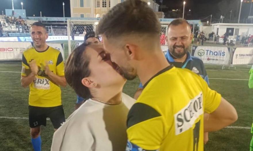 Προς γενική κατάπληξη και χωρίς να έχει μαρτυρήσει τις προθέσεις του, ο Ρουμάνος ποδοσφαιριστής Μιχάι Σκιόπου κάλεσε στο κέντρο του γηπέδου την αγαπημένη του Αντίνα, ενώπιον της οποίας γονάτισε, τής πρόσφερε το καθιερωμένο δαχτυλίδι και της ζήτησε να τον παντρευτεί!