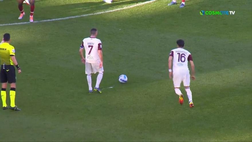 Στο 22’ ύστερα από εκτέλεση φάουλ ο Ραντοβάνοβιτς άνοιξε το σκορ για την Σαλερνιτάνα κόντρα στην Ρόμα.
