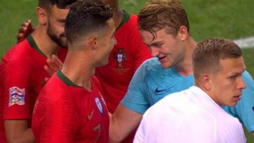 Ο τελικός του Nations League μόλις είχε ολοκληρωθεί με την Πορτογαλία να νικά την Ολλανδία (1-0) και τους παίκτες των δύο ομάδων να χαιρετιούνται στον αγωνιστικό χώρο. Ο Κριστιάνο Ρονάλντο προσέγγισε τον Ματάις Ντε Λιχτ και θέλησε να βγάλει… είδηση. «Θα έρθεις στη Γιουβέντους;», τον ρώτησε.