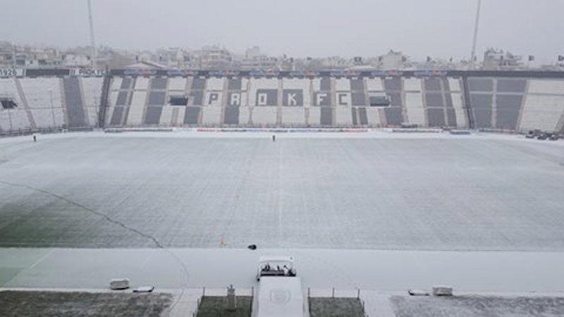 Η Τούμπα «ντύθηκε» στα λευκά, με τους ανθρώπους του ΠΑΟΚ να ανεβάζουν στη επίσημη σελίδα του «δικεφάλου» στο facebook, φωτογραφία από το στρωμένο με χιόνι γήπεδο.