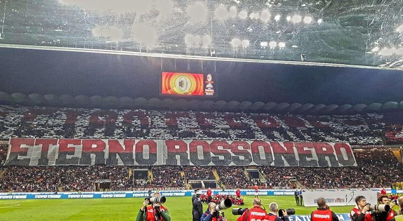 Le magnifique hommage de #SanSiro a Cesare Maldini... #MilanJuve pic.twitter.com/euYdC653Tr
