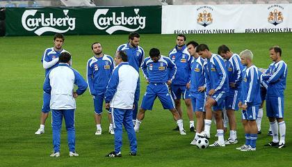 *Περίπου 6-7 χιλιάδες φίλαθλοι βρίσκονται στις εξέδρες του "Σκόντο" της Ρίγας, αν και οι γηπεδούχοι εκτιμούσαν πως το χωρητικότητας 10.000 θεατών στάδιο θα ήταν κατάμεστο. Ανάμεσά τους είναι και περίπου 150 Έλληνες φίλαθλοι. Ο αγωνιστικός χώρος είναι γλιστερός εξαιτίας ενός ψιλόβροχου.
