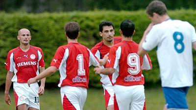 Τη νίκη με 2-1 κατέκτησε ο Ολυμπιακός απέναντι στον Απόλλωνα Λεμεσού στο τελευταίο φιλικό παιχνίδι επι Αυστριακού εδάφους, που πραγματοποιήθηκε στο Φάρχατ, ένα χωριό 35 χιλ. λίγο πιο μακριά απο το Σέεφελντ. Οι «ερυθρόλευκοι» έπιασαν την καλύτερή τους απόδοση σε σχέση με τα προηγούμενα φιλικά παιχνίδια και με 2 γκολ του Ιεροκλή Στολτίδη πήραν τη νίκη. Η πολύ καλή κυκλοφορία της μπάλας και η επίθεση στην Κυπριακή εστία απ΄όλες τις πλευρές τα στοιχεία που χαρακτήριζαν τους «ερυθρόλευκους».