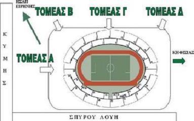 Οι φίλαθλοι θα εισέρχονται στο εσωτερικό του Σταδίου αποκλειστικά και μόνο από τον τομέα ο οποίος αντιστοιχεί στην θύρα που αναγράφεται στο εισιτήριο τους».