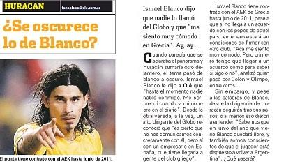 Άγνοια για το ενδιαφέρον της Ουρακάν για την απόκτησή του δήλωσε ο Ίσμαελ Μπλάνκο μιλώντας στην «Ole». Παράλληλα παρουσιάστηκε ευτυχής στην Ελλάδα, αλλά πέταξε το μπαλάκι στην ΑΕΚ για την παραμονή του.