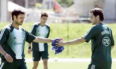 Το… μενού της προπόνησης της Τρίτης περιελάμβανε και πάλι οικογενειακό διπλό, όπως και την Δευτέρα. Οι παίκτες χωρίστηκαν ανάλογα με την ηλικία τους, σε μια «ρεβάνς» του χθεσινού διπλού.