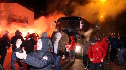 Η ατμόσφαιρα που δημιούργησαν οι φίλοι των Πειραιωτών στην αποστολή της ομάδας, θύμισε «Καραϊσκάκη» με συνθήματα, φωτοβολίδες και καπνογόνα, ενώ σύμφωνα με τις τελευταίες πληροφορίες, στις κερκίδες του γηπέδου την Κυριακή, θα παραβρεθούν εφτά με οκτώ χιλιάδες οπαδοί των φιλοξενούμενων.