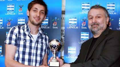 Ο Γεωργιάδης παρέλαβε το βραβείο από τον παλαίμαχο ποδοσφαιριστή της ομάδας Γιώργο Πανταζή.